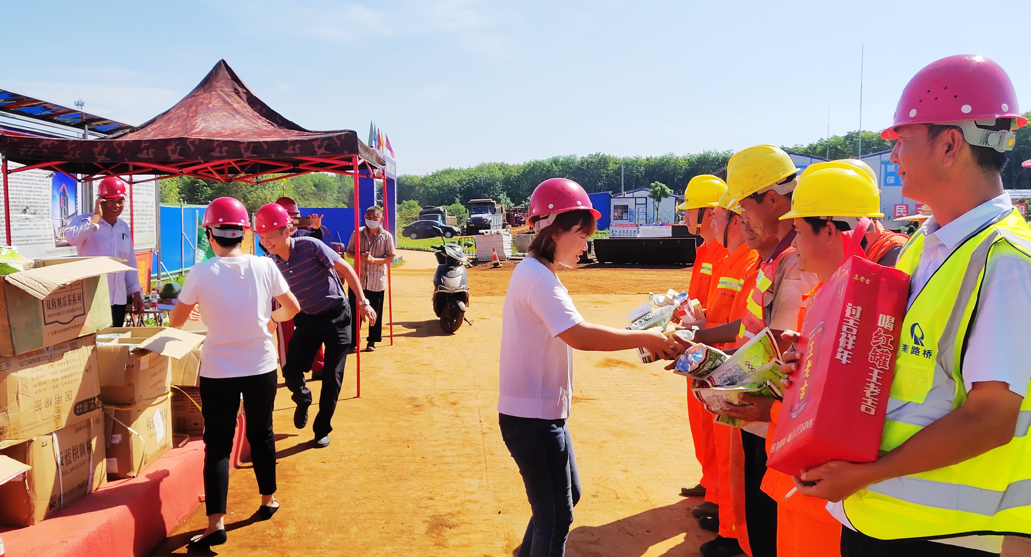 6月17日,海南公路公司总经理曾毅等到省道308美洋线项目、万宁农村公路和扶贫六大工程一线工作人员开展“送清凉”维权关爱活动,将凉茶、藿香正气水、绿豆、毛巾等防暑降温物品亲自送到一线施工人员手中,并亲切慰问了奋战在施工岗位的一线施工人员,叮嘱他们增强自我保护意识,遵守安全操作规程,做好防暑降温工作,注意身体,劳逸结合,做到安全在岗、安全作业。