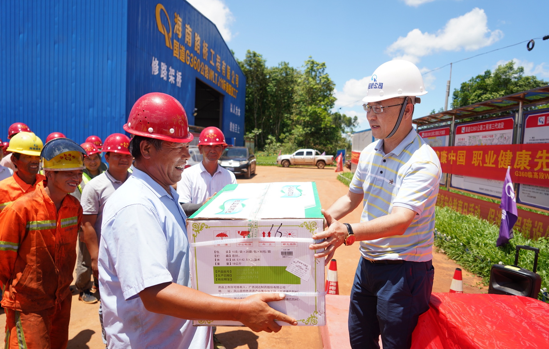 根据省路桥公司党委工作部署,6月18日-19日,省路桥公司工会、安全技术与生产保障部联合到国道G360项目和省道308美洋线项目开展“夏日送清凉”和《职业病防治法》宣传工作。在活动现场,省路桥公司总经理助理吴岳伟等向一线施工人员送上消暑保健饮品和职业病防治的宣传资料,要求项目部合理安排施工时间,最大限度避开高温峰值时间施工,并叮嘱大家加强对职业病防治工作的宣传力度,提高自我防护意识,用实际行动推进项目建设,为海南自贸区(港)建设当好开路先锋。